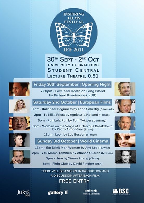 IFF 2011 took place at the University of Bradford campus on Friday 30th September, Saturday 1st and Sunday 2nd October. At the Opening Night on Friday we have shown 'Love and Death on Long Island' by Richard Kwietniowski who came from London to answer the questions of the public and talk about his plans for the future. Then 9 more films followed over the weekend. The public has voted "Italian for Beginners" by Lone Scherfig as the Best Film of the Festival!